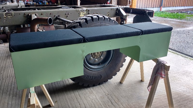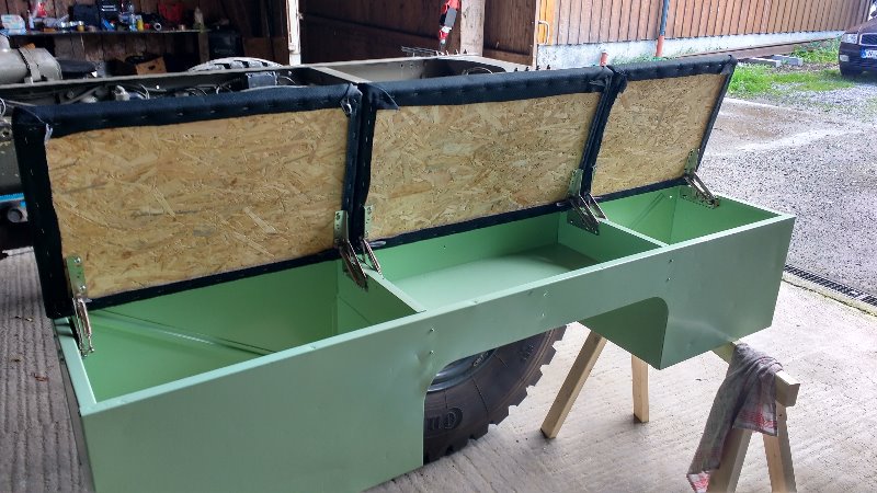 Mittlere teil der bank als kleine ablage, und der beiseite als grosse staukiste. Alle boden verkleided mit gummimatte antirutch motiv von Hornbach. Polder komt noch sobald ich auch das polster fur die aufbau herstellen lass.