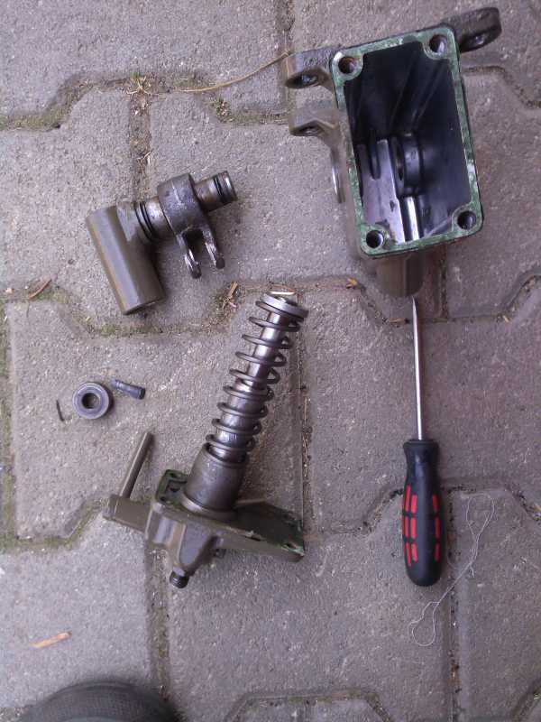 Hydraulikstempel einfädeln mit Erraten wo die Verzahnung in der Achse eingreift.