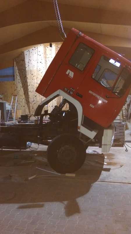 aufwand:abschneiden , ransetzen , anschweissen ca 3 Tage. ....die Innenverkleidung steht noch aus.... ging eigentlich gut...allerdings mit Kran und sonstigen Hilfsmitteln. ...bisschen gebastelt War der neue Halter für kipp Zylinder, Auflage an der Hütte und Hydraulik Umbau. Im grossen und ganzen zu empfehlen , vor allem das platzangebot in dem Fernfahrer Haus jetzt.