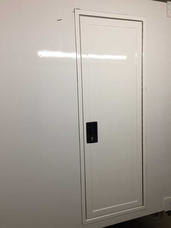 Ich habe nur im Bereich der Stauraumklappe eine Strebe durchtrennt. Die Tür habe ich mit der Schlossseite direkt an die Strebe in der Wand gesetzt.