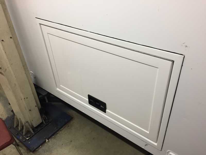 Klappen und Tür selbst gebaut. Gibt Bilder und Anleitung im Beitrag "Stauraumklappen bauen".