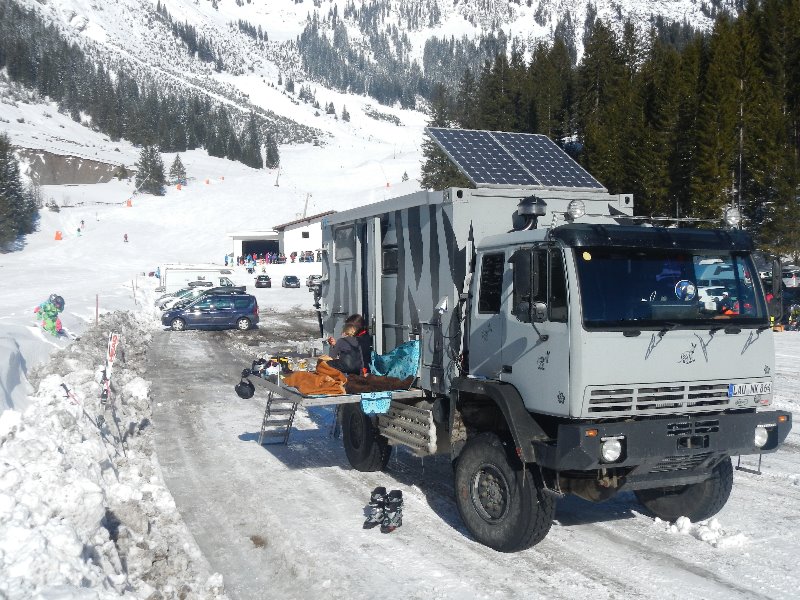 Das Bett ist fertig, die Außenanlagen bis dahin auch. Ich habe auch eine provisorische Solaranlage um unseren Kompressorkühlschrank zu betreiben. Jetzt überlege ich gerade wie ich die 2 Stück Solarzellen am einfachsten am Fahrzeug positioniere, sie sind nur als Provisorium gedacht.