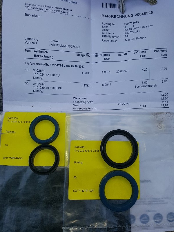 2 Dichtringe: STEYR WERNER in A, die Hydraulikkomponenten plus Werkzeug vertreiben. Im Durchmesser !! gängige Ware.