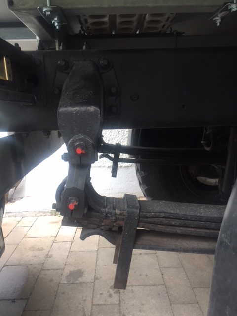 Mein 12M18 mit ca. 9,5 t und Originalfederung schlägt in Normalsituationen , auch im Gelände, nicht durch. Aus meiner Sicht ist eine Blattfeder im Gelände dann optimal ausgelegt wenn Sie möglich viel Federweg macht, ohne Durchzuschlagen. Genau das macht Sie beim 12M. Man sollte ein Zusatzblatt nur dann einbauen wenn die Originalfederung durchschlägt. Lediglich das Fahrverhalten auf der Straße wird sich verbessern, wenn das Fahrwerk härter wird. Um das Problem der Freigängigkeit am Koffer zu lösen habe ich die Achse 5 cm unterlegt und längere Brieden montiert. Das ist wesentlich günstiger als eine Zusatzlage.
