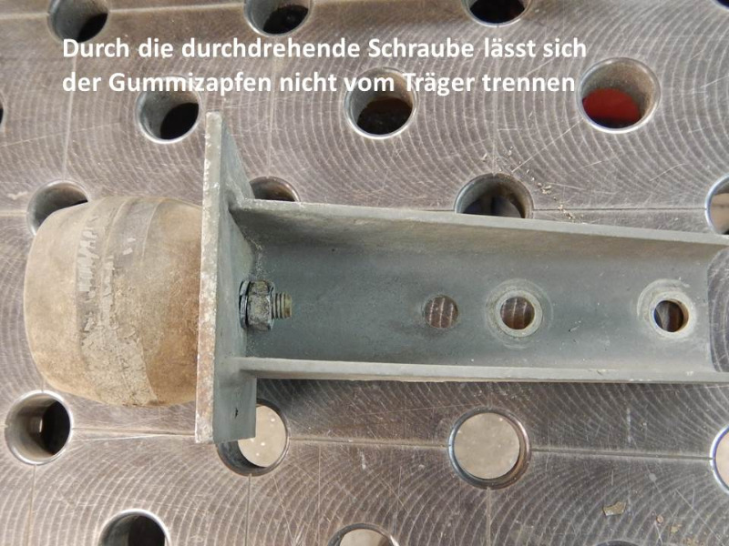 Letzthin habe ich die 6 Stück Anschlagpuffer der Parabelfederpakete mit Halterung ausgebaut und wollte die Gummis zwecks Behandlung entfernen.