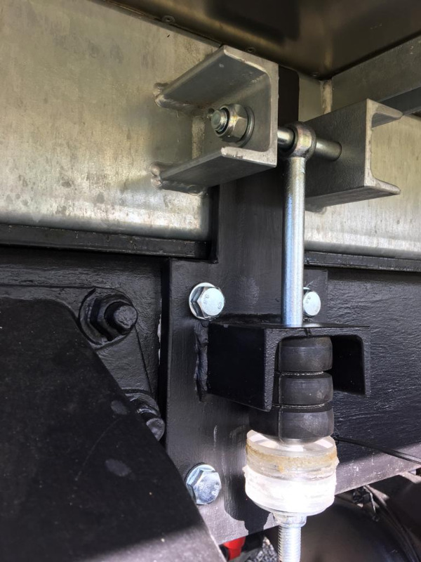 Die mittlere und vordere Verbindung ist mit Federn ausgeführt. Bei Verschränkung funktioniert das einwandfrei, nur ist mir das letztens mit der Bodenwelle aufgefallen und dann habe ich es mal beobachtet. Ich werden die Federn vermutlich so belassen und das Gummilager hinten mit einer grösseren Festigkeit austauschen. Dann schauen wir mal wie es sich verhält. Wenn ich die Möglichkeit habe gehe ich schon recht ins Gelände und möchte eine möglichst grosse Verschränkung mit der Federlagerung gewährleistet haben.