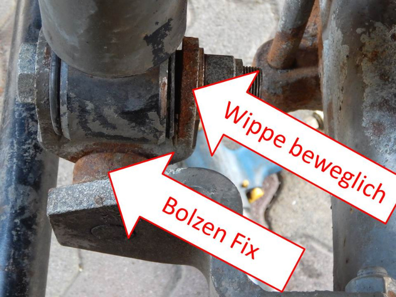 Die Aufnahme ist jedoch auf einem Bolzen befestigt, lässt sich aber nicht bewegen. Müsste diese Aufnahme bewegbar sein - würde mich zwar wundern, da auch kein Schmiernippel oder ähnliches vorhanden.