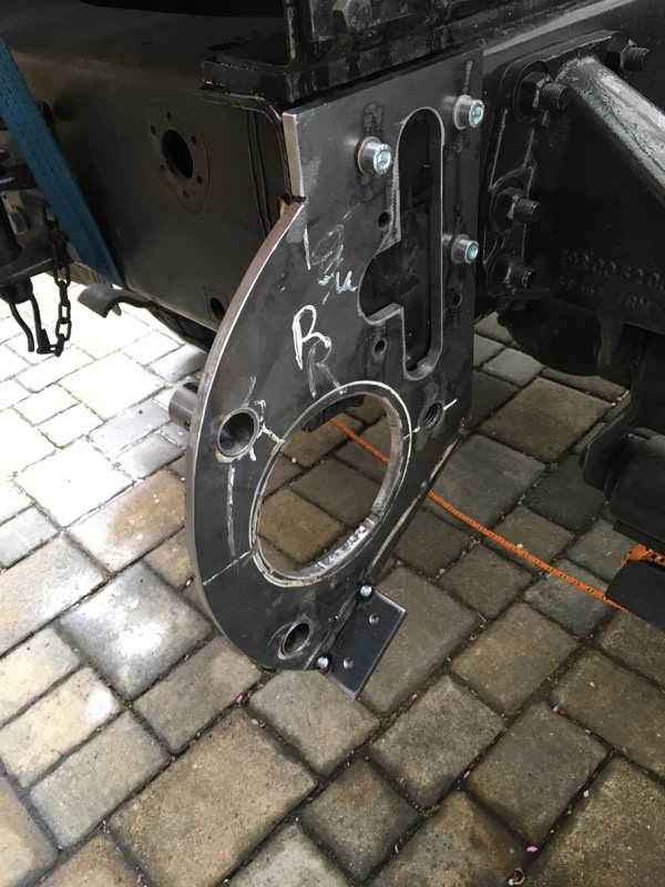 Man kann den UFS auf 2 Positionen arretieren, sieht man auf den Bildern. Weitere Positionen sind relativ einfach einzubringen, es braucht nur einen 30mm Kernbohrer und ein paar Rohrstücke mit 30mm Außendurchmesser. Das ganze wird durch 25mm Bolzen gesichert welche von Innen Steckbar sind. Von Innen deshalb da ich davor noch Kisten und Kästen montiere (damit auch ja der ganze Hausstand mitkann)