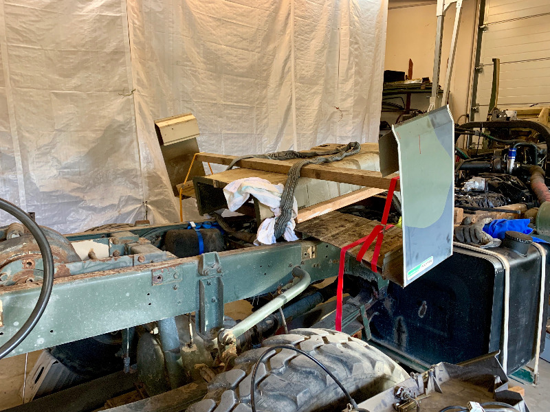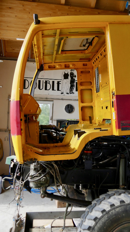 Nächster Schritt, morgen hol ich mir eine Stapler vom örtlichen Lagerhaus und werde die neue Kabine vom jetzigen Lagerplatz auf das Fahrgestell aufsetzen und provisorisch abstützen. Dann wird dort die Rückwand abgeschnitten damit ich dann die Verlängerung einpassen kann.