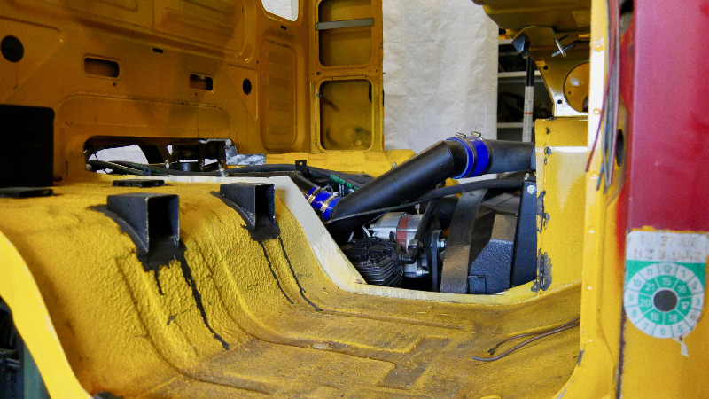 Der Getriebetunnel ist bei den "M"- Fahrerhäusern höher, weil der Motor höher im Rahmen sitzt. Würde man eine Kabine eines zivilen Fahrzeugs aufsetzen dann entesht ein Luftstau über dem Motor und er würde zu heiss werden.