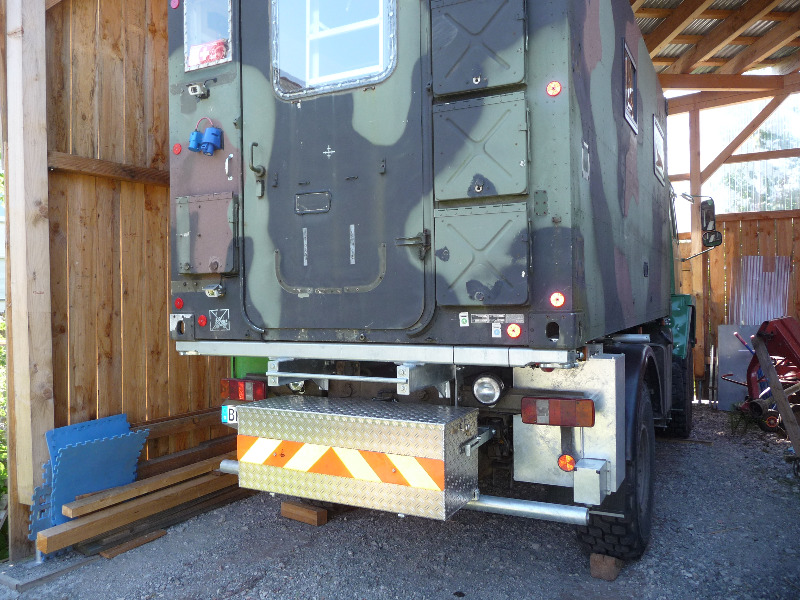 Was ich noch habe, ist ein ganz einfacher Einstieg von hinten über eine „ Leiter“ aus Alu angefertigt. Wiegt 5 kg. Mit einem anderen Einstieg hätte ich die 7,5 to nicht halten können – das war mir schon von Anfang an klar . Geht ganz gut zum Einsteigen für uns Junge !.