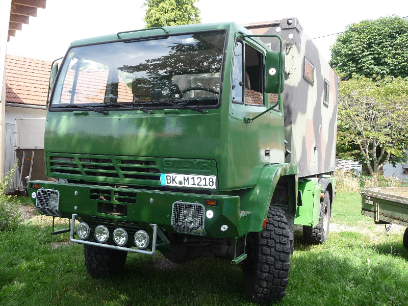 Ja, der Steyr ist jetzt fast fertig – ein paar Schubladen fehlen noch, aber die bekomme ich auch noch hin. Der erste Start ist im Oktober hoch bis Flensburg und auf der anderen Seite , Schorfheide, Dresden , wieder nach Hause und dann mal sehen. Es waren jetzt 3 Jahre Arbeit, das hatte ich so am Anfang nicht gedacht. Aber ich habe es hinbekommen und das ist für mich die Hauptsache getreu meinem Lebensmotto / nicht nachlassen. Steyrchen fährt sich prima. Es ist ein tolles Fahrgefühl so hoch oben, eben ganz anders als mit dem PKW.