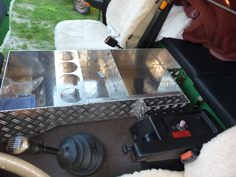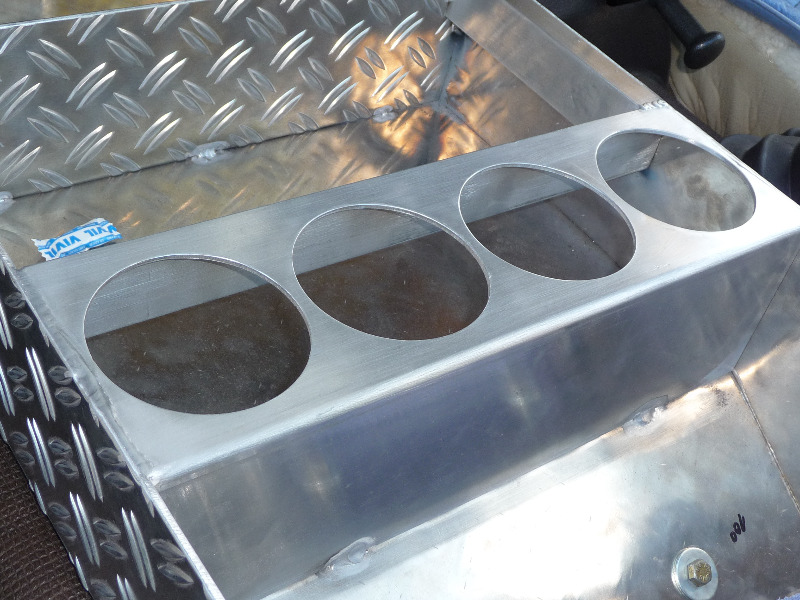 das wollte ich euch mal zeigen. Die Ablage habe ich aus Riffelblech hergestellt und mit den Schrauben für den Feuerlöscher und zwei zusätzlichen an der Rückwand verschraubt. Die Ablage bekommt jetzt noch einen Deckel mit Polsterung als Liegeplatz für meinen Hund. Sie ist so stabil gehalten – mit Zusatzprofilen, dass ich mit meinem Gewicht, die Ablage voll belasten kann.