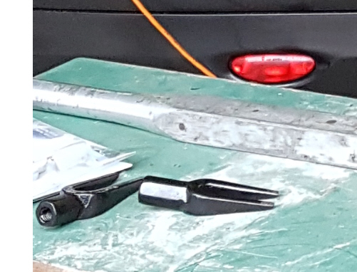 Die Schraube ist in der Hülse festgegammelt. Habe das gut mit Rostlöser eingeweicht und mit Kunststoffhammer durchgetrieben.
