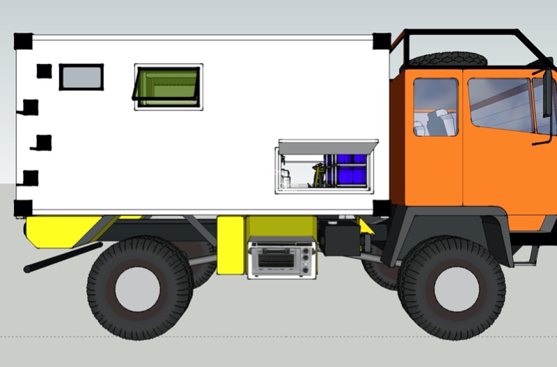 In der Freiraum am FS ist dan genügend platz fur ein Staukiste um das Kochfeld/Backofen unter zur bringen. Es gibt dan sogar noch mehr platz in die Längsrichtung. Aber die Aufnahme von federpakket lebt da dan irgendwo am rahmen. So die frage ist jetzt die position ganz ausnutzen... so ja wie ?