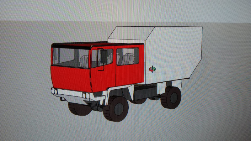 In meiner Nachbarschaft habe ich jetzt einen Absetzkoffer (430cm x 220cm x 230cm) entdeckt, der mit ein paar Modifikationen auf den Steyr passen sollte. Der Koffer besteht aus einem Alu-Gitterrahmen auf stählernem Bodenrahmen und ist mit Aluminiumblech verkleidet. Das Ganze macht einen recht robusten Eindruck. Ein möglicher Plan wäre den Koffer etwas zu kürzen und mit einer Heckschräge zu versehen (Auflagefläche 2,90 m, max. Länge ca. 3,70m). Zusätzliche Streben aus Alu-Formrohr (vernietet und verklebt) sowie Holzplatten (Multiplex) über der Dämmung (Styrodur) sollten doch genug Stabilität erzeugen, oder was meint Ihr? Was haltet Ihr von dem Plan? Alternativ wäre natürlich auch eine Lösung von ca. 3,00m Länge ohne Heckschräge möglich. Anbei ein paar Bilder des Koffers und einer Sketchup-Visualisierung, in welche Richtung es dabei gehen soll.