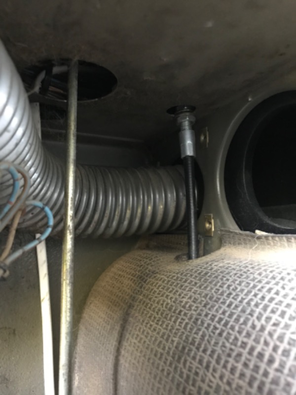Leider habe ich beim Zerlegen / Demontage des Gaszuges keine Bilder davon gemacht. Ich vermute der Gaszug läuft vor dem Fussgashebel durch das Loch im Bodenblech (an der Spritzwand).