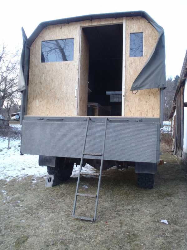 Rückwand mit Türe und 2 Plexiglasfenster. Damit kann in Österreich auch eine Wohnmobil Zulassung erfolgen.