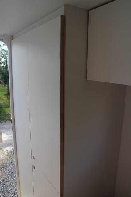 Staufächer vom Möbeltischler aus Multiplex Melaminharz Hochfest Weiss beschichtet, Schnittflächen sichtbares Holz, leicht weiss geölt. Beschläge von Häfele.