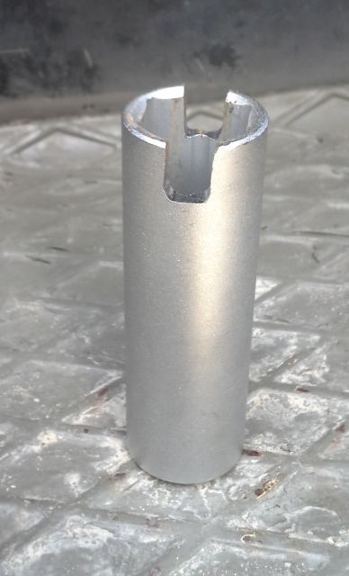 ich greife das Thema nochmal auf. Habe mir eine 18er Nuss gekauft und zwei Schlitze rein geflext. Funktioniert wunderbar und man spart Platz und Gewicht, da man den 1/2'' Ratschenkasten eh dabei hat.