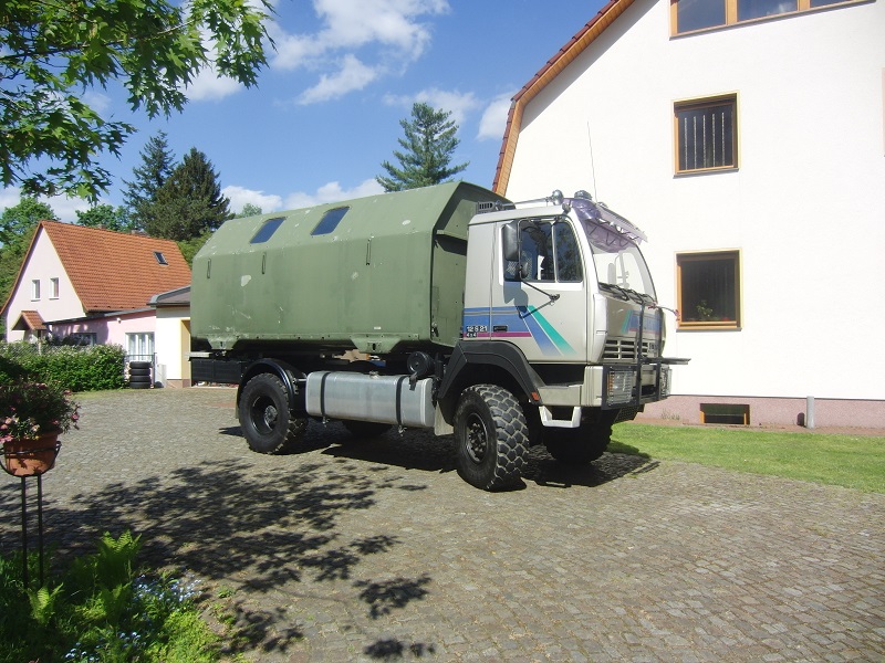 Biete meinen Steyr 12 S 21, natürlich mit Allrad und Sperren, mit Ladeluftkühler 215 ps, 905 L Dieseltanks, abgelastet auf 7,5 t Große Dachkonsole, Sonnenblende, Lufthörner Zusatzscheinwerfer alles aus Edelstahl Fahrradträger an Front, große Lichtmaschine. LAK Koffer auf Dreipunktlagerung 5 Isolierfenfenstern und zwei Dachlucken.Der Koffer ist leer ( Gern auch ohne Koffer ) Umweltzonenbefreit da SKFZ Messwagen. Er ist sofort abfahrbereit, alle Flüssigkeiten alle Filter neu, Bremsen gemacht. 4 Staukisten u.s.w.
