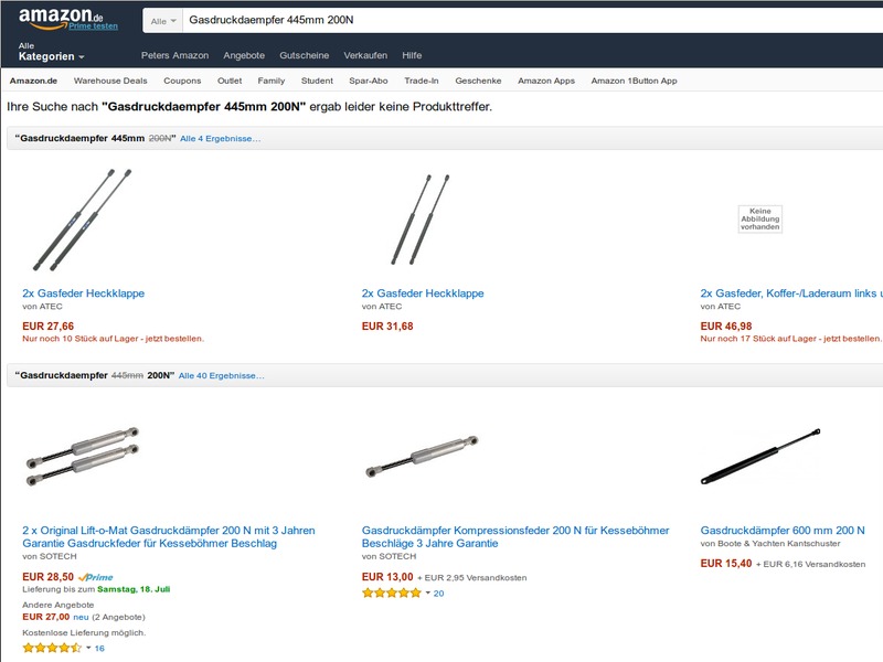 17 Juli 2015 03:35ich hab sie gefunden bei Amazon einfach Gasdruckdaempfer 445mm 200N eingeben und er kommt hoch.Ist der einzige bei mir gewesen.