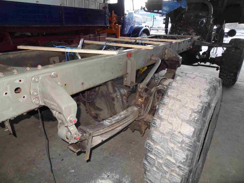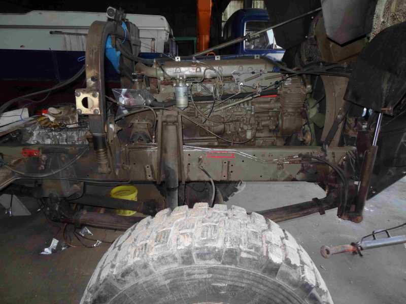 Chassis , Motor, Unterboden des Fahrerhauses, und Felgen sind wo nötig gestrahlt, grundiert und schwarz lackiert.