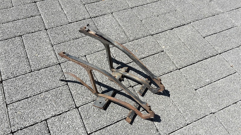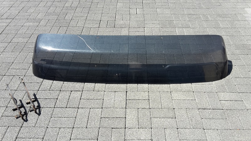 ich fange an aufzuräumen, hier eine gut erhaltene originale Steyr Sonnenblende in anthrazit (nicht lila), keine Risse, keine abgeplatzten Teile, mit den dazu gehörigen zwei Dachaltern, die sind rostig und sollten aufgearbeitet werden.