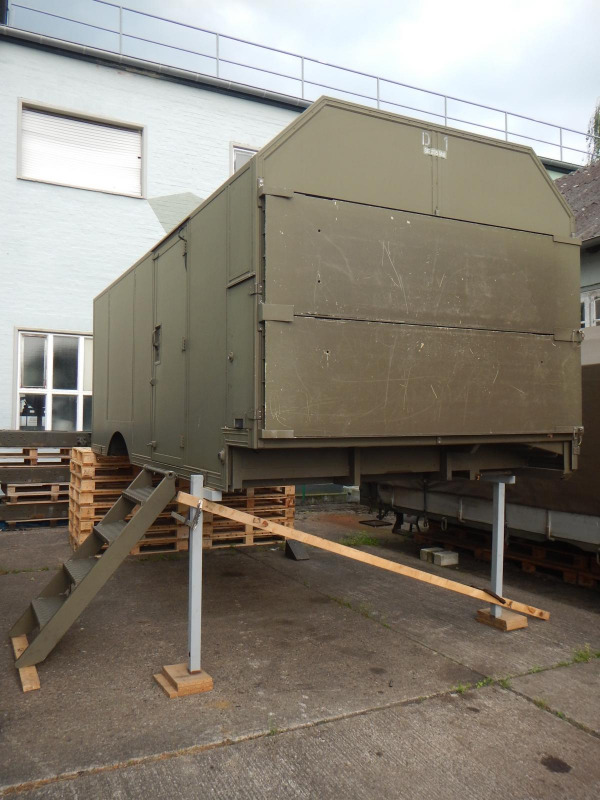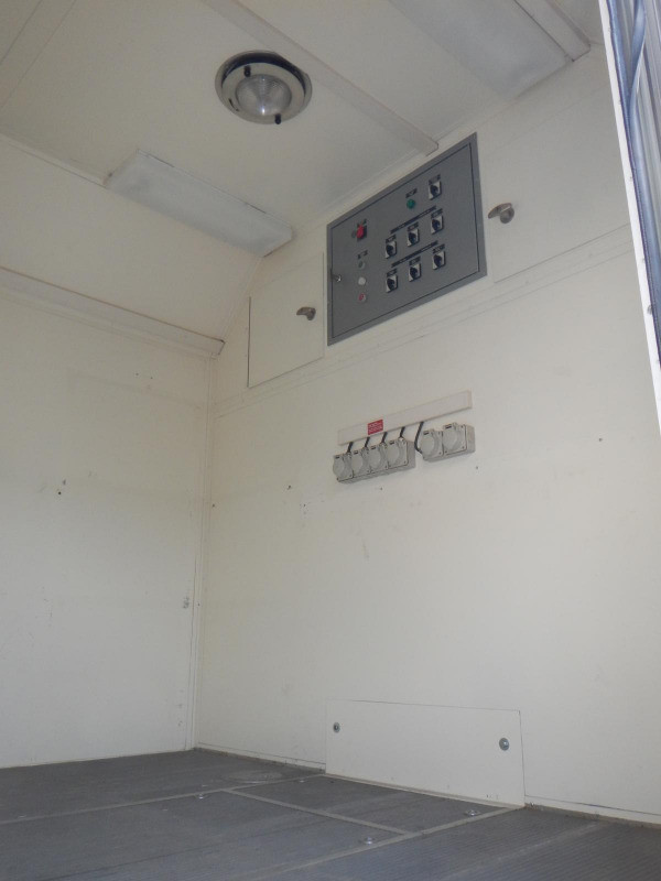 Der Aubau ist in zwei Abteile, durch eine geschraubte (entfernbare) Zwischenwand geteilt, innen ist er leer.