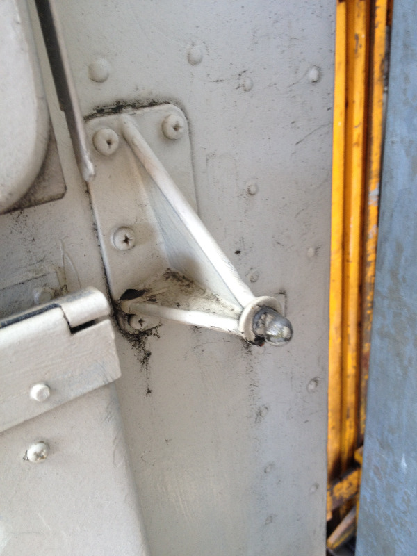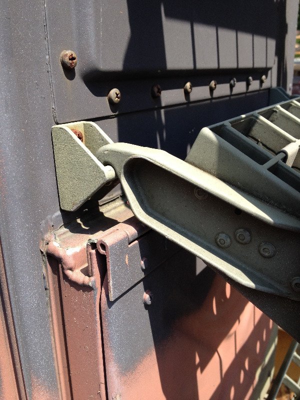 mittels dem die Leiter verriegelt und gegen Langfinger mit einem Vorhängeschloss gesichert werden kann.