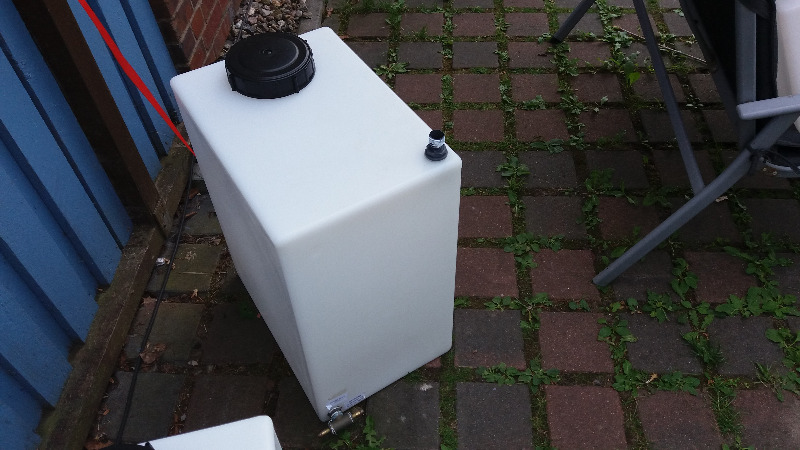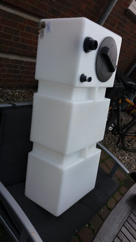 Die Tanks waren 1 Jahr in Betrieb. Sie haben diverse Anschlussstücke - 40mm zum Befüllen - 3/4 Zoll Messinggewinde als Anschluss für den Entnahmeschlauch, sowie einen 2. Anschluss oben für Entlüftung - dieser ist etwas groß ausgefallen. z.T. kann ich auch noch mit passenden Schlauchstücen aushelfen.