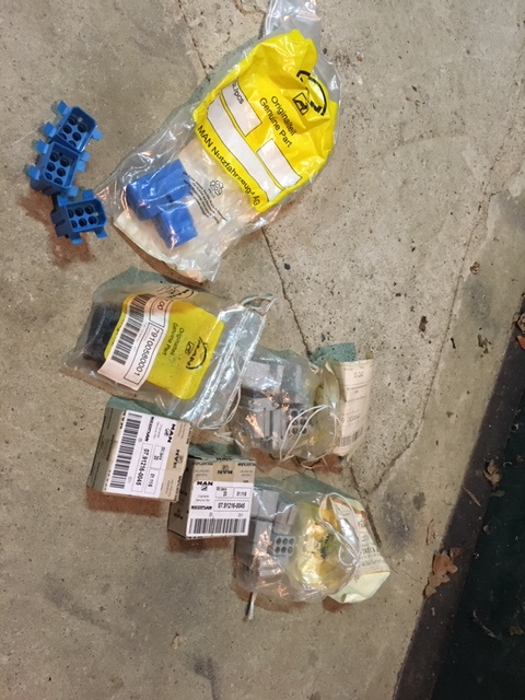 zum Verkauf kommen diverse Stecker und Pins sowie eine Grundplatte für ein Relais für einen Steyr 12M18