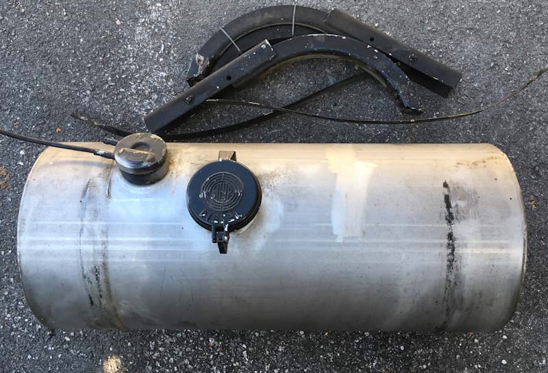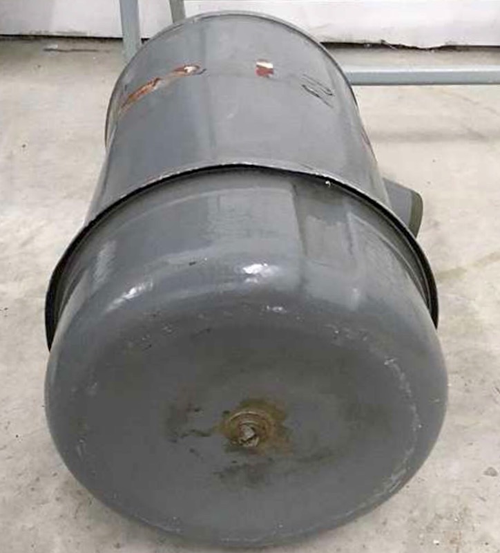 Tank mit Steyr- Tankdeckel, Konsolen und Entnahmearmatur 800mm, Durchmesser 350mm, ca. 75 Liter