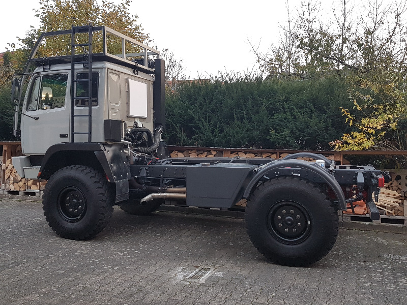 Er steht nun momentan noch beim Kabinenbauer mit bereits Montierter Leerkabine die jedoch, soweit der plan, demontiert wird und auf ein anderes Fahrzeug verpflanzt werden soll. Drum Dreht es sich um das Nackte Steyr 12m18 Fahrgestellt.