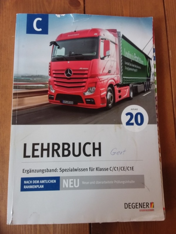 nach bestandener Prüfung verschenken wir unser Lehrbuch C/C1/CE/C1E. Der Zustand ist gebraucht, aber es ist ja nur zum Durchblättern gedacht, um sich mit der Materie vertraut zu machen.