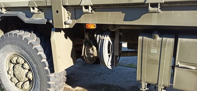 Per Sondergutachten musste kein Unterfahrschutz nachgerüstet werden, der LKW hat daher volle Bodenfreiheit fuer den Geländeeinsatz.