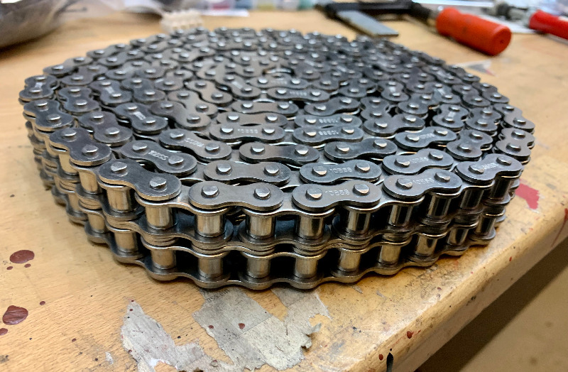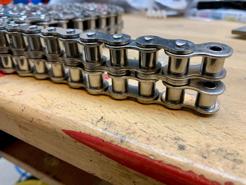 Ich habe auch noch eine Restmenge von einer Antriebskette in Edelstahl. Ich habe daraus meine Trittstufen gebaut. Es sind noch 2,6m übrig, das reicht für noch ein Paar Stufen. Wenn die jemand gebrauche kann...70€.