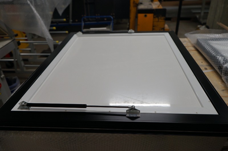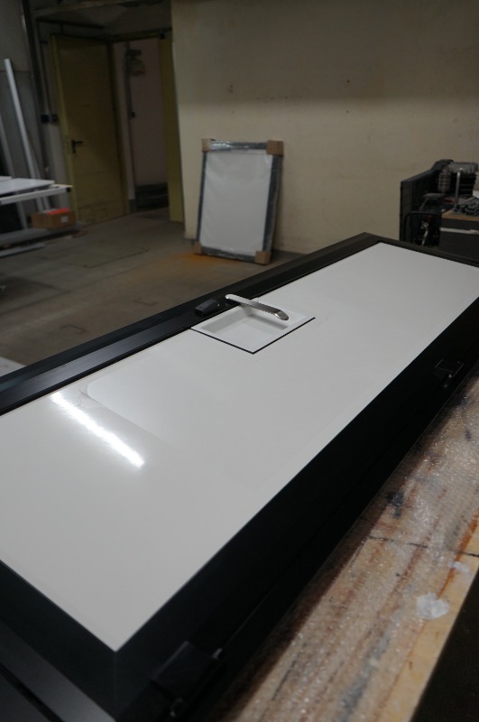 Außerdem habe ich noch eine Staufachklappe mit dem Ausschnittmaß 900x1100mm nach oben öffnend mit Gasdruckdämpfern.