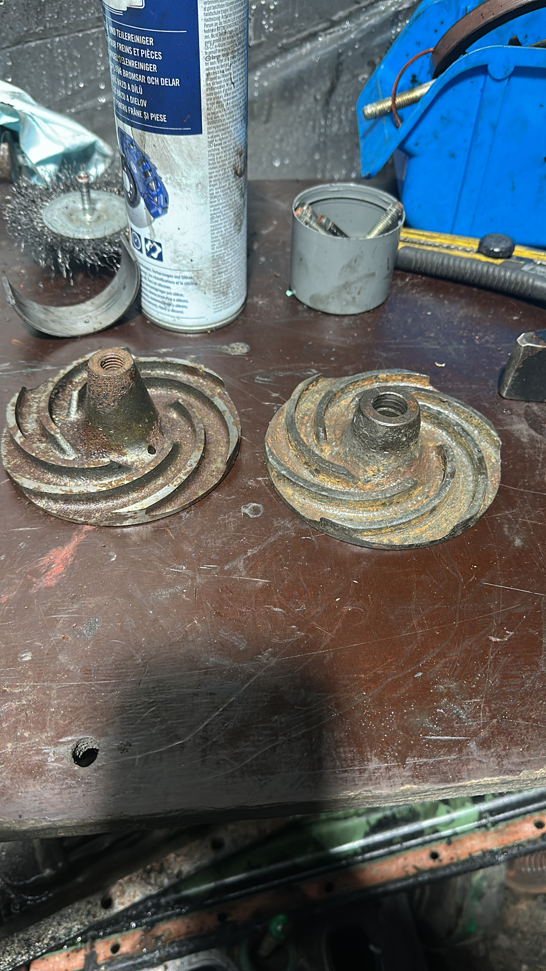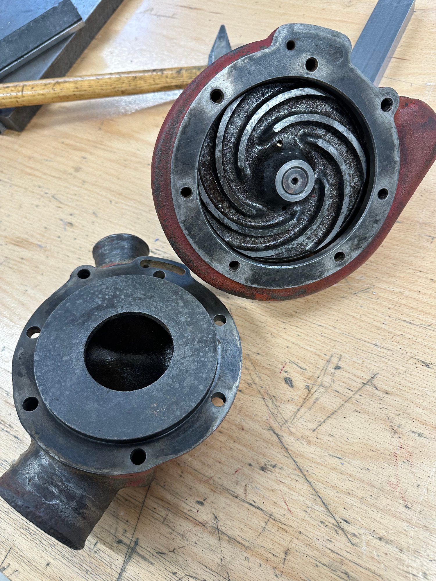 Also habe ich meine alte Pumpe zerlegt, welche mir in Frankreich den Motorschaden beschert hat. Die Pumpe ( Generation 1) hat blöderweise ein anderes Pumpenrad, glücklicherweise aber wurde das Gussmodell nur angepasst und nicht komplett geändert.