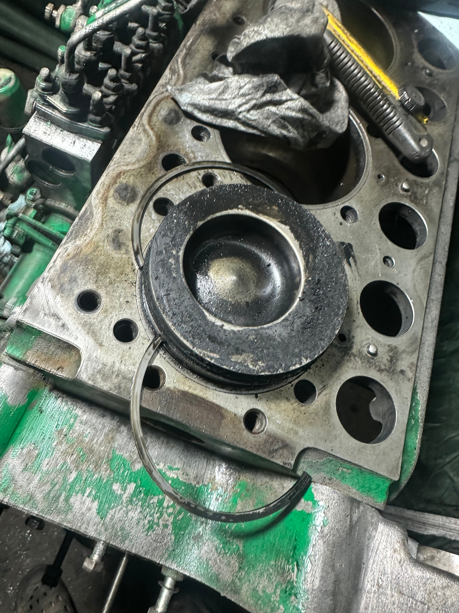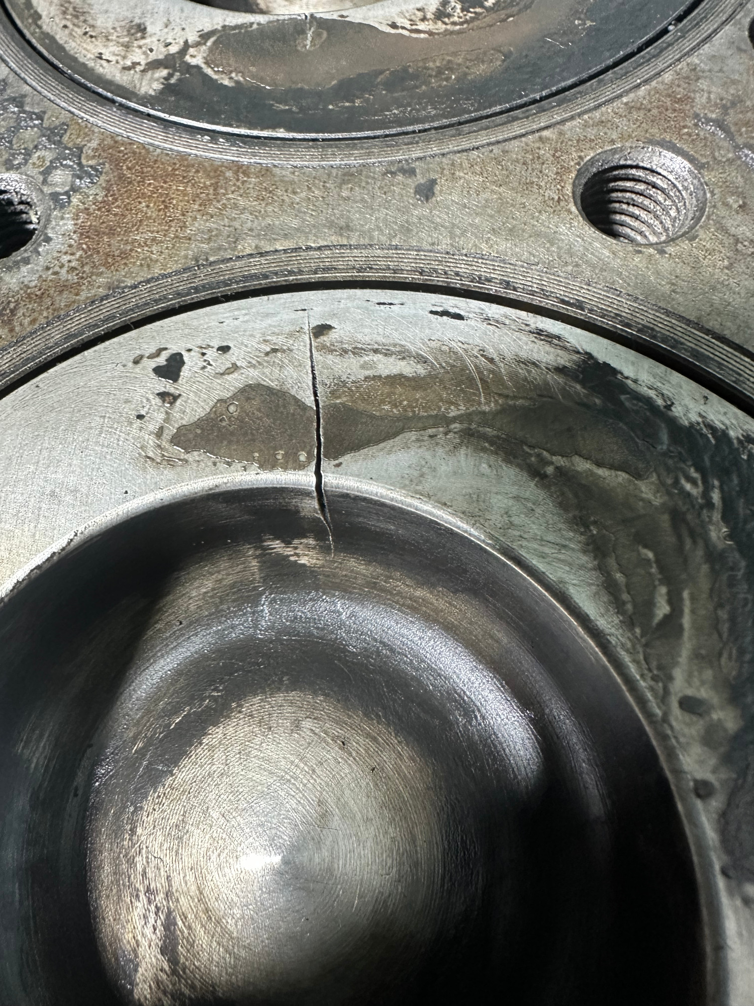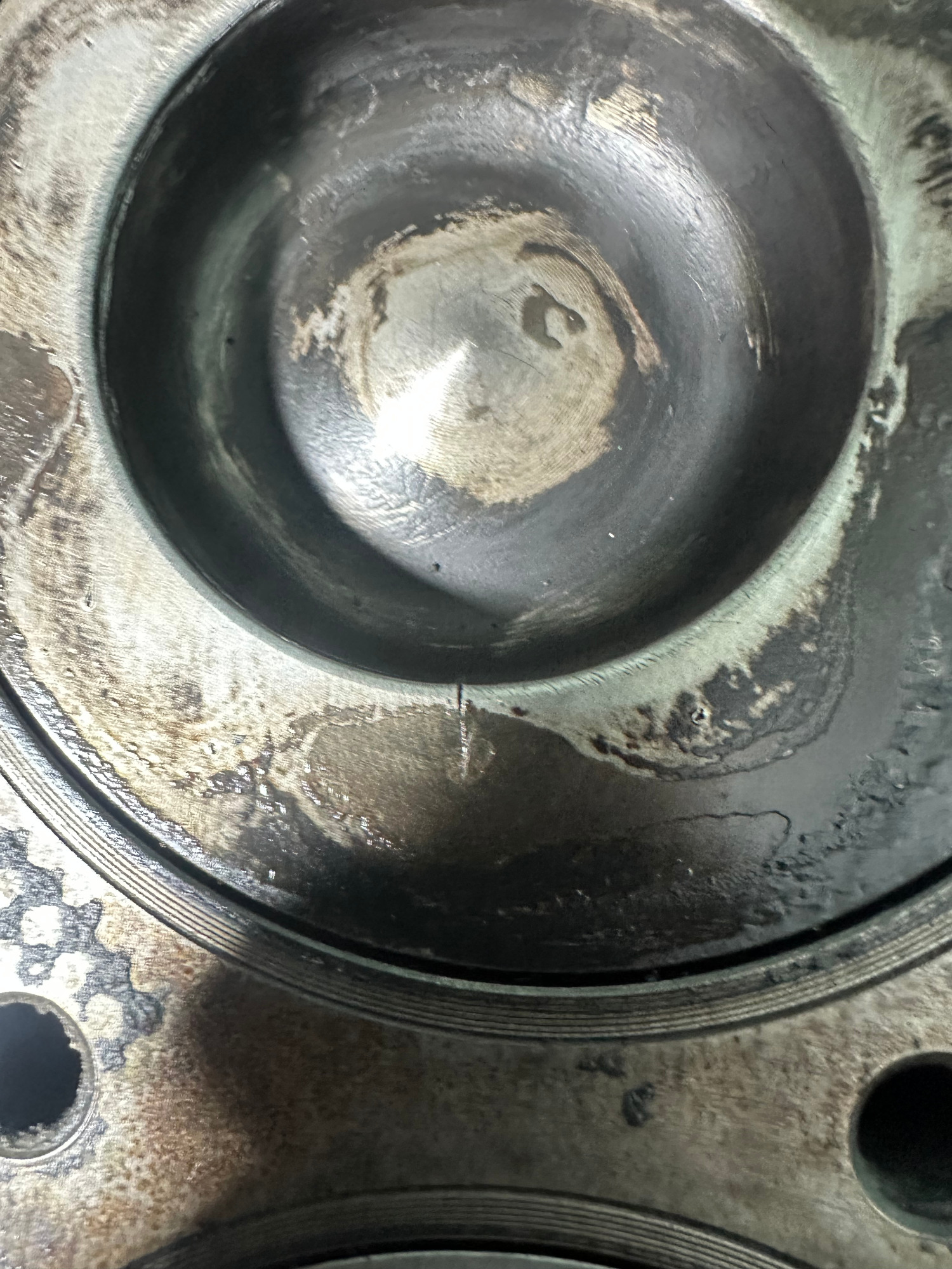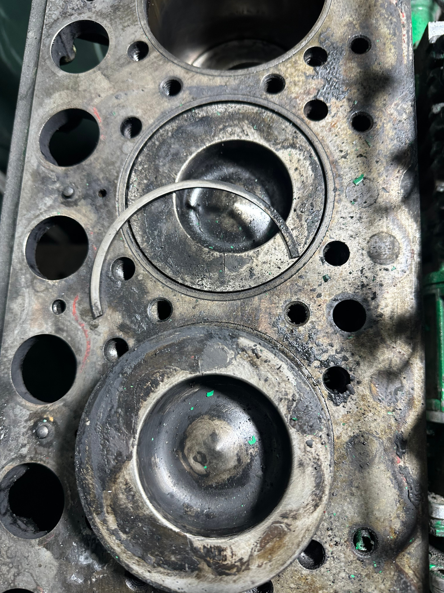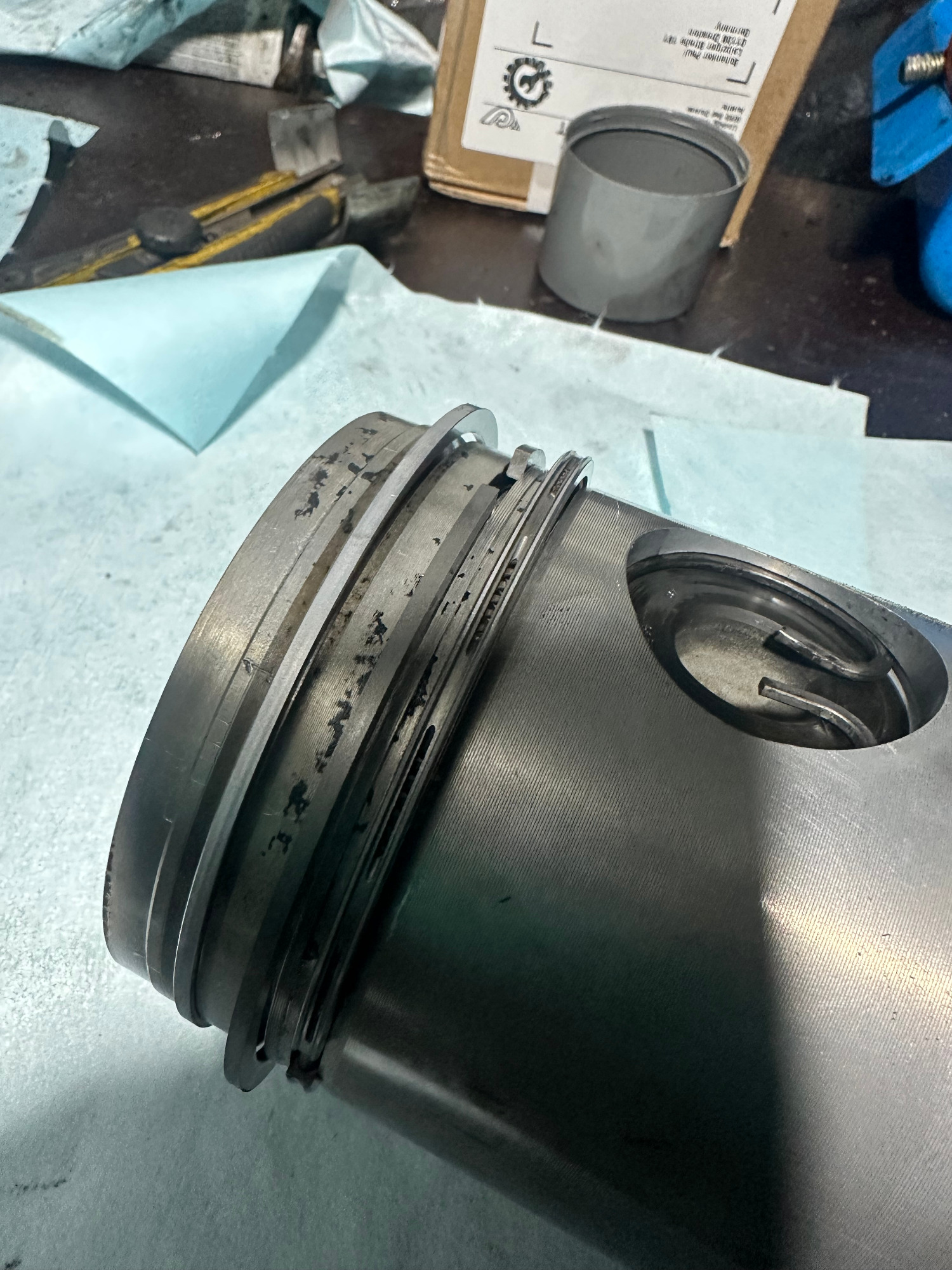 Zwei Kolben gebrochen, bei 5/6 Zylindern ist der untere Kolbenring gebrochen.