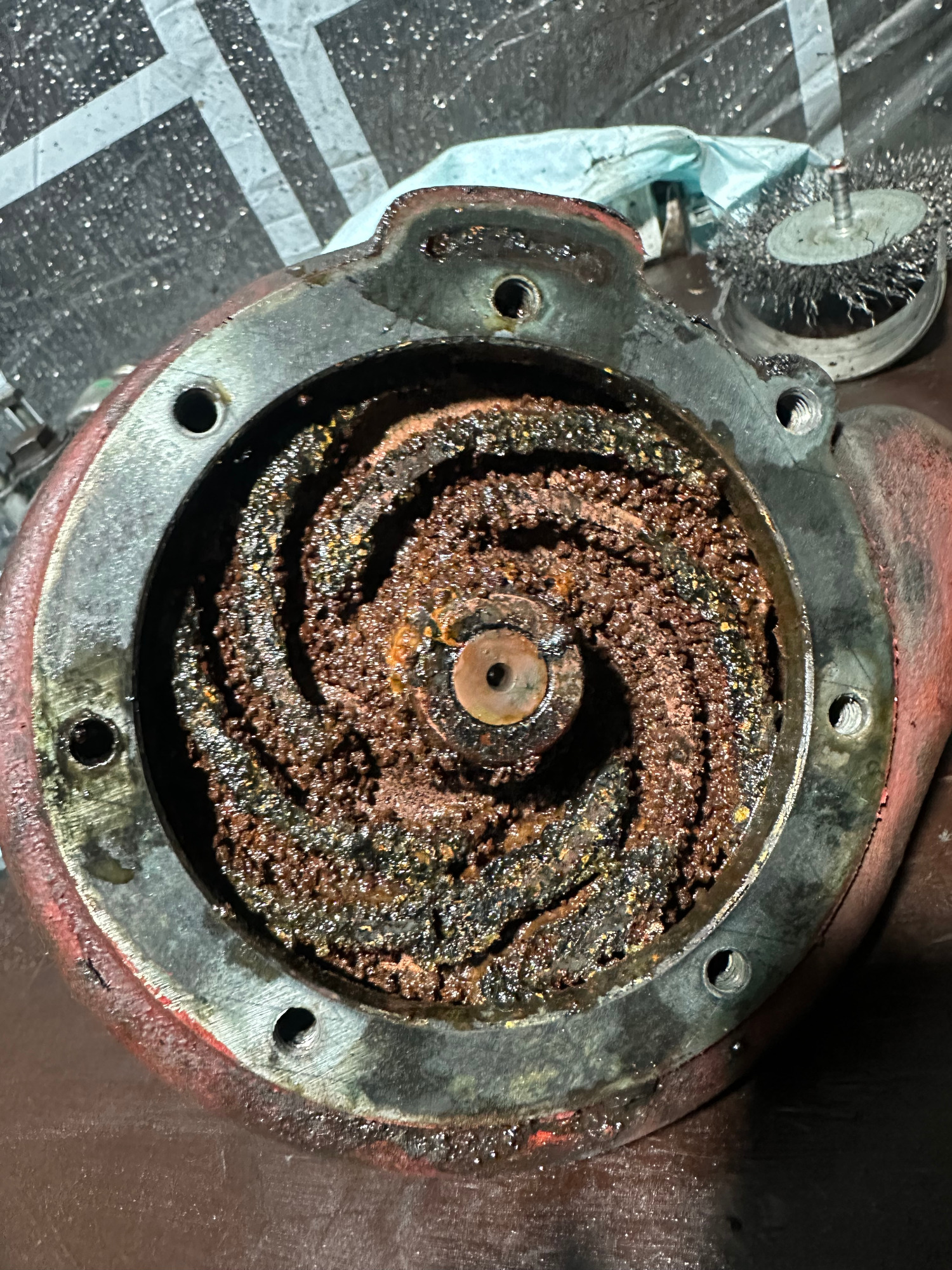 Die Pumpe war stark verrostet, alles voller kleiner Korrosionskügelchen. Ich vermute, dass hier falsches Kühlmittel verwendet wurde.