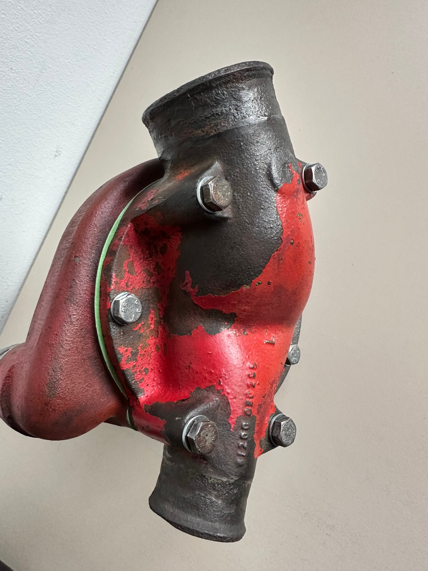 Das umgearbeitete Pumpenrad sitzt super. Mit neuer Dichtung und frischen Unterlegscheiben sieht das ganze doch schon wieder vorzeigbar aus.