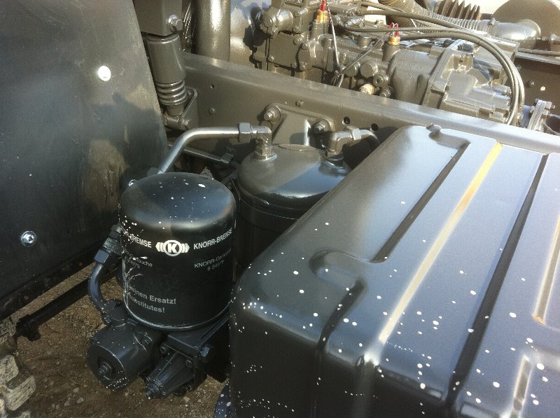 Die Schalldämpfer sind bei momentan gängigen Lkws an den Luftdrockner