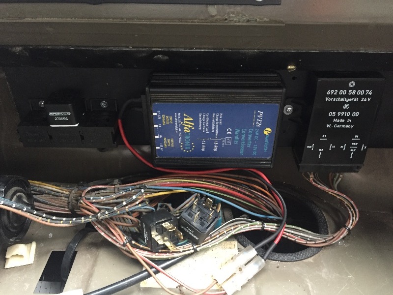 Die 3 relais halter sind bisher gemeint fur 2st 12V geschaltete anschlusse. Ein mochte ich uber ein zundungspuls der 24V dauer Anschluss schalten, sodas die rust spanning der Wandlers die baterie nicht belastet.